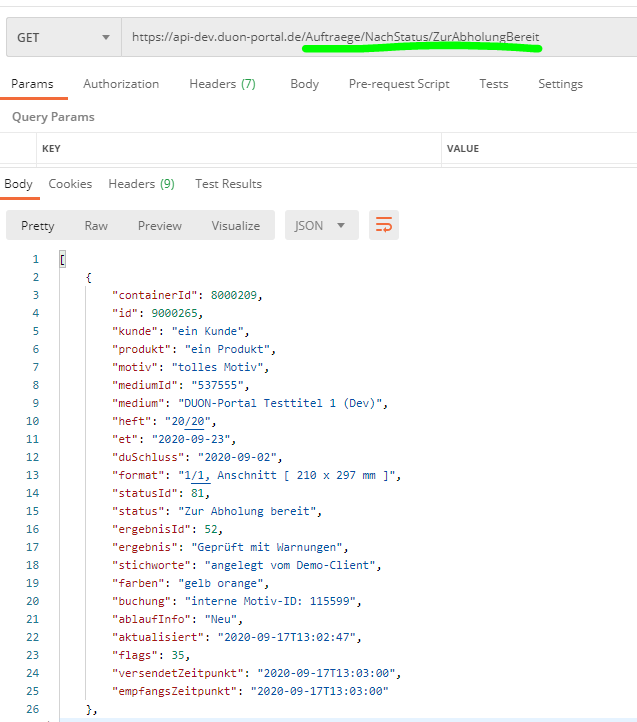 ( typischerweise derjenige des vorrangegangenen API-Aufrufes ) verwendet werden. Die dann ggfs. zurückgegebene Liste mit Aufträgen kann dann analog zu Beispiel 1 abgearbeitet werden.