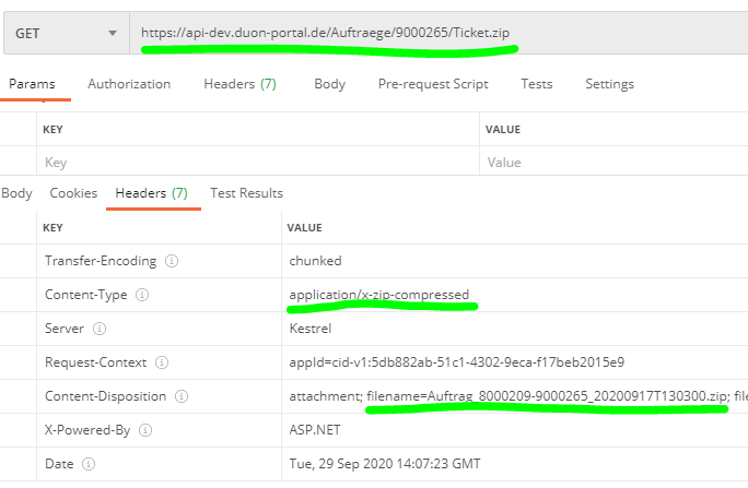 und im Falle des Vorhandensein eines oder mehrerer Aufträge diese iterativ zu durchlaufen und dabei die gewünschten Daten von einem weiteren Endpunkt abzurufen. Je nach Anwendungsfall können diverse Dateien / Infos pro Auftrag abgerufen werden. Dazu zählen u.a.: